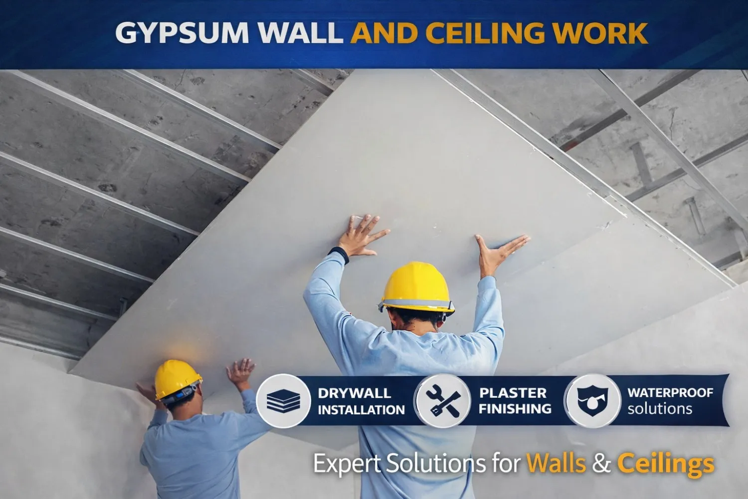 High-quality gypsum installations for walls and ceilings, offering durable and elegant finishes.